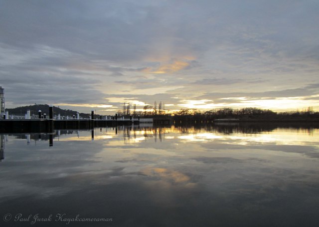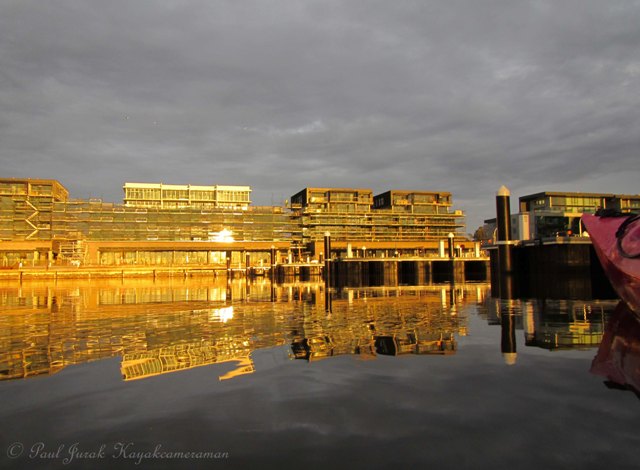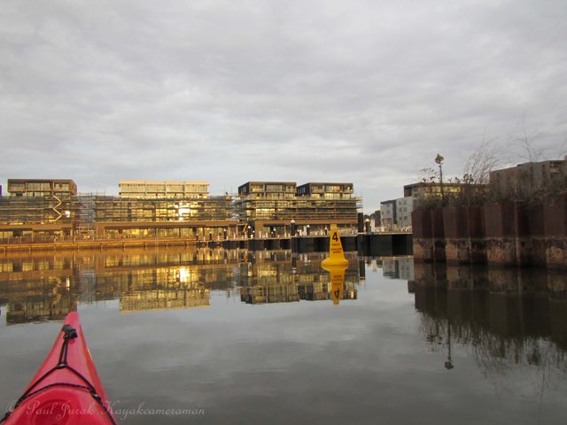 12 June 2013: As I paddled my way up into the wetlands this morning I was met with marbled skies and mirror reflections. Yet again I was treated to another beautiful pastel transformation. On my return I noticed that the containment lines had been removed from the new Kingston foreshore development site which gave me a chance to have a sneak peak and capture a few early progress shots.