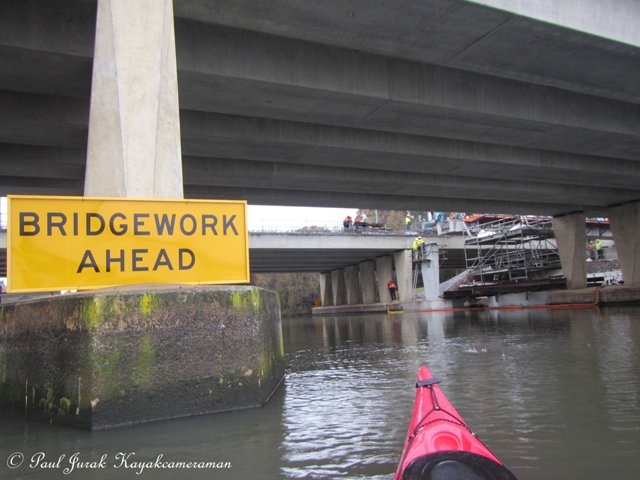 I even got the chance to see a piece of the new bridge get placed into position.
