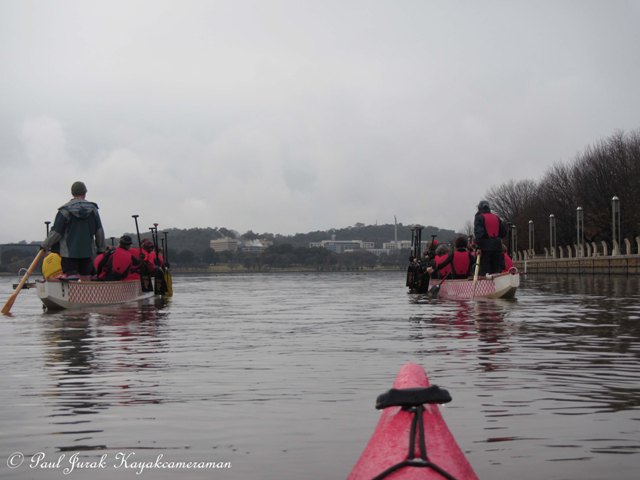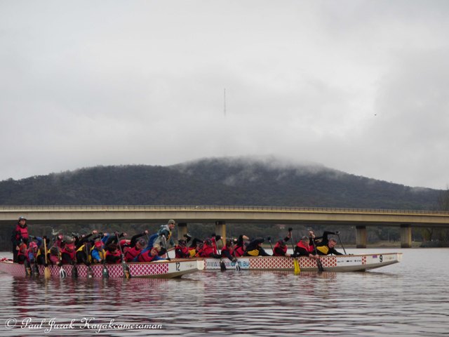 The dragonboaters showing true grit and steel out there this morning.