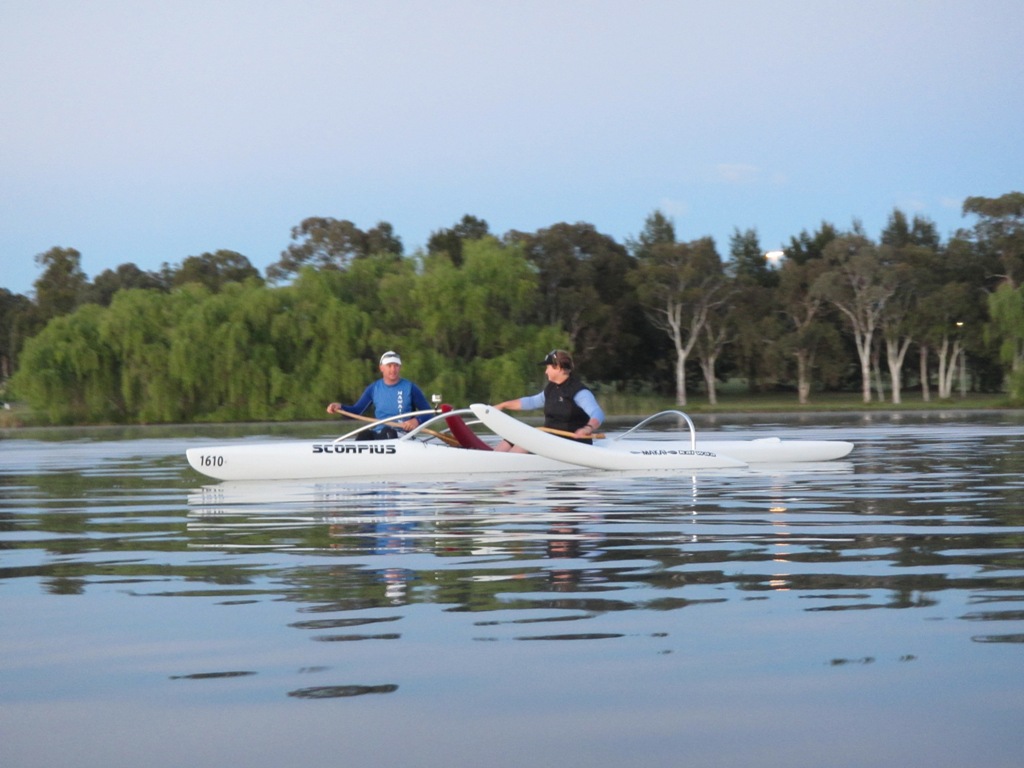 Simon and Bron …The Outriggers always look good on the water.