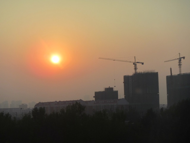 The pollution is soooooo thick here in Tianjin it is sickening. I awoke for 6am and went up to the higher levels in search of a few good vantage points from our building.