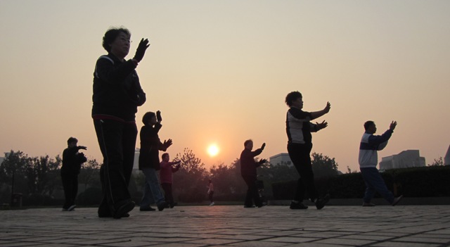 I head over to the park which is opposite the hotel and watch the local ladies do their morning Thai Chi exercises; it makes for a few nice shots.