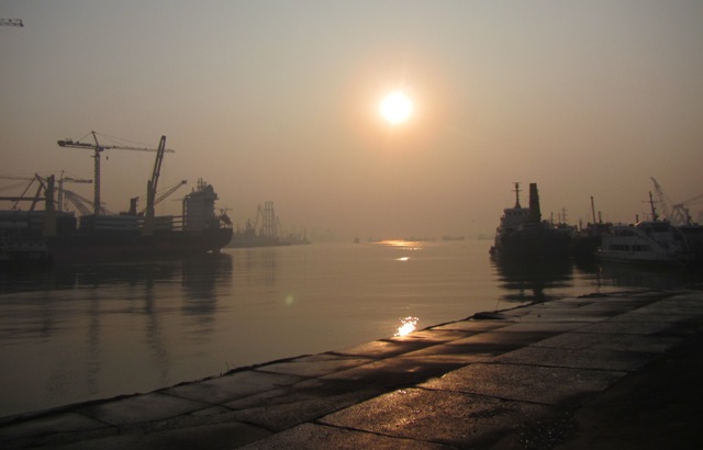 I come to this small section that opened out to the harbour, the sun was still low enough, the port was a mass the cranes, cargo ships and a morning buzz that just added to the atmosphere.
