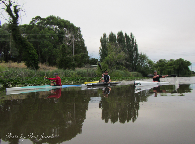 The guys from the Burley Griffin Canoe Club are tearing past me as usual.