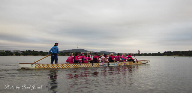 21 Jan 2014: The ever happy Dragons Abreast ladies certainly added a huge splash of colour to a dull Canberra morning and there were plenty of other people out on the water enjoying the calm conditions as well. It was nice to catch up and have a chat again, you all looked fantastic out there and thanks for brightening up my morning.