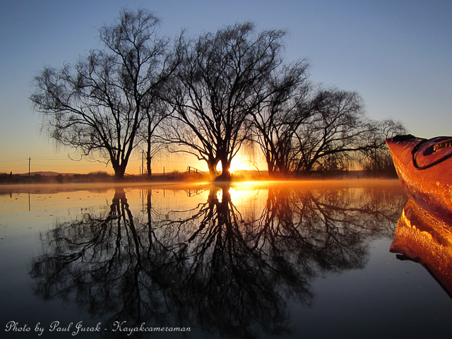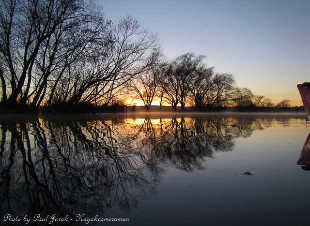 3 Aug 2014: What a start to the morning with minus 5 temps, crystal clear skies, mist dancing on the water. Despite the cold biting at my face and my fingers and toes burning I couldn’t resist paddling further so that I could watch the scenery transform. I was transfixed by the sunrise which rose resembling a pot of gold. Behind me was a soft palette of soft pastel tones. Winter at its best with snow play available in the Brindabella’s and perfect clear skies for all to enjoy