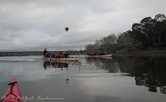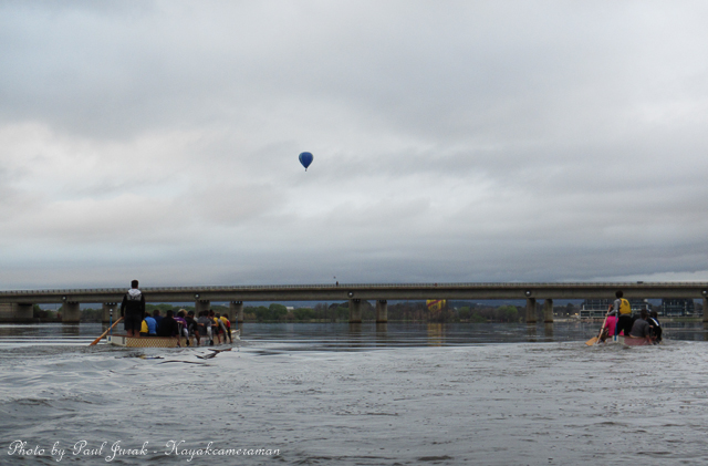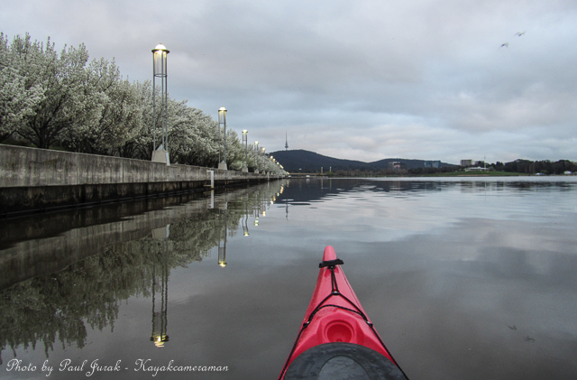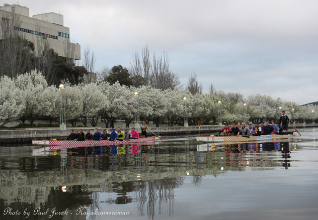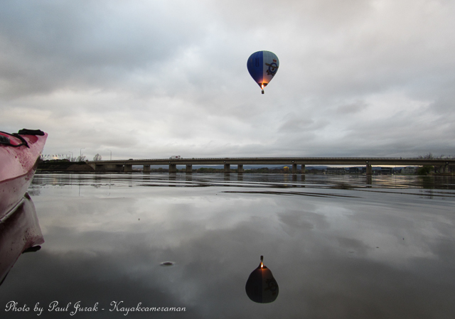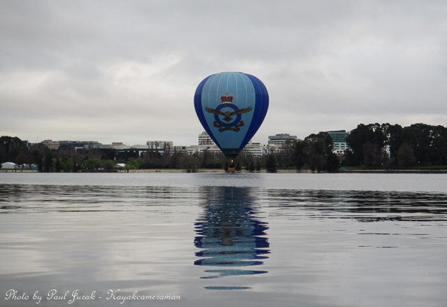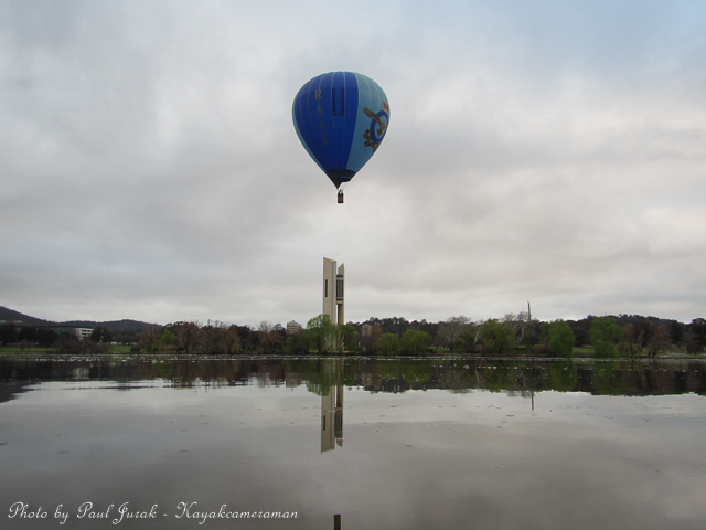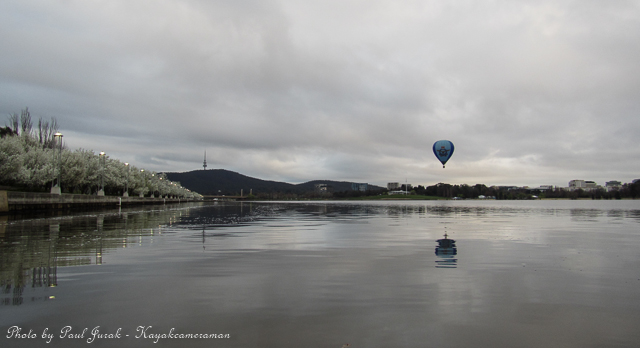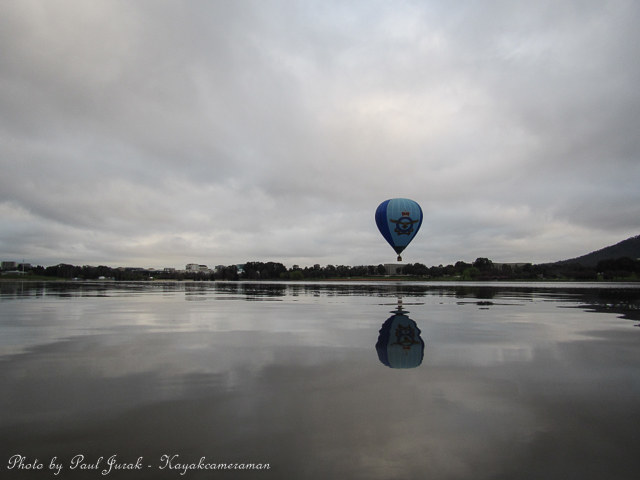 12 Sept 2014: Even on a dull and overcast morning there’s never a dull moment on Lake Burley Griffin. We had balloons hovering high in the sky and even at one stage the RAAF balloon was basket dragging on the water’s surface through the middle of the main basin. Then the ever happy dragon boaters came tearing past me (as usual) adding a huge splash of colour to a grey morning. It was a great way to end the working week