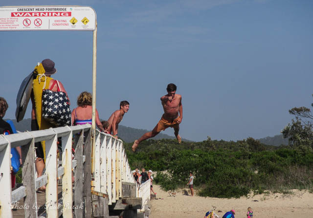 3 Jan 2013: There’s never a dull moment, especially when you have 2m tides a beautiful summers day and gorgeous old bridge….Bombs away!